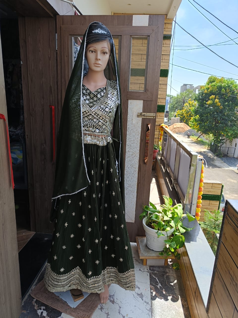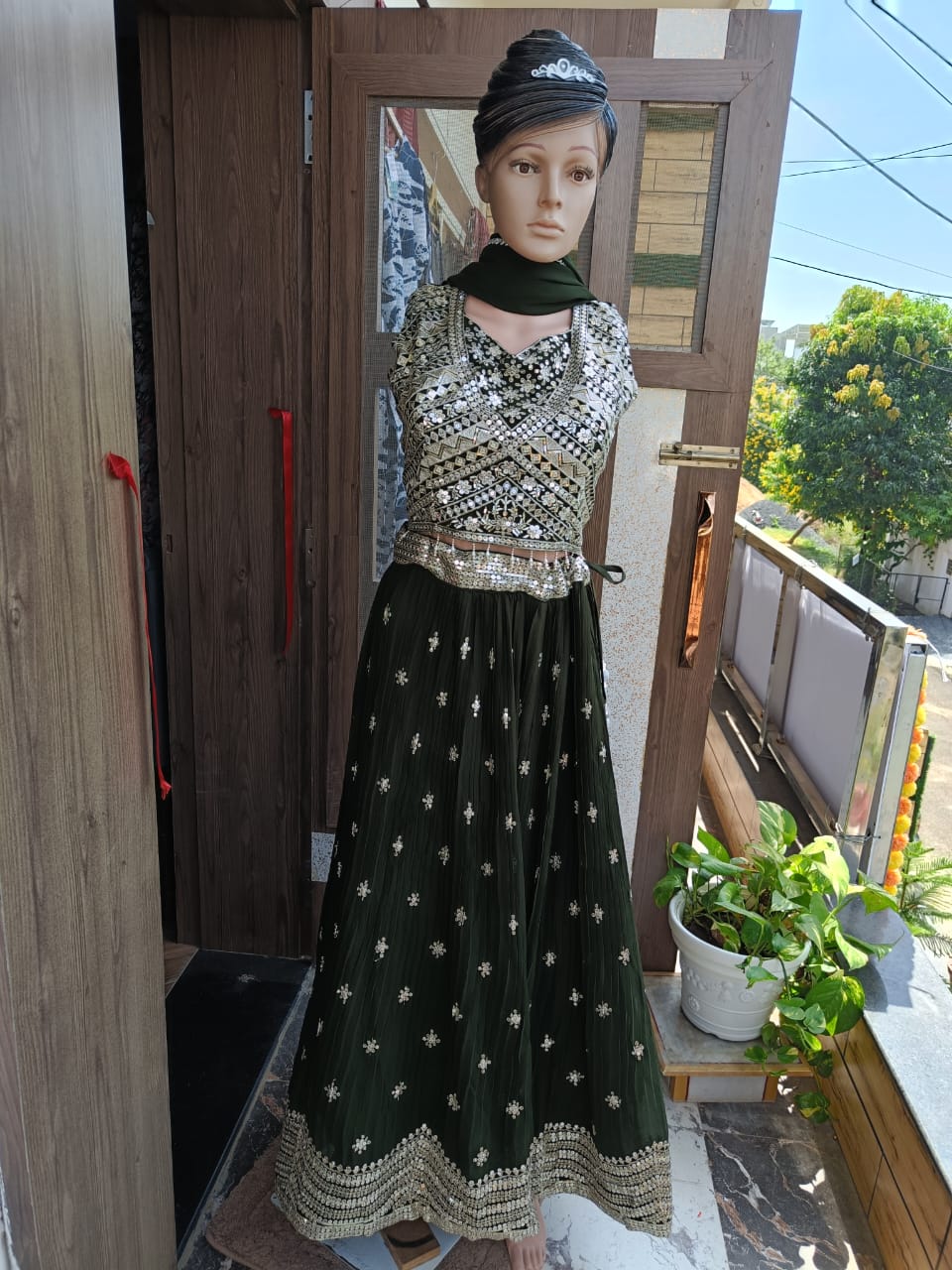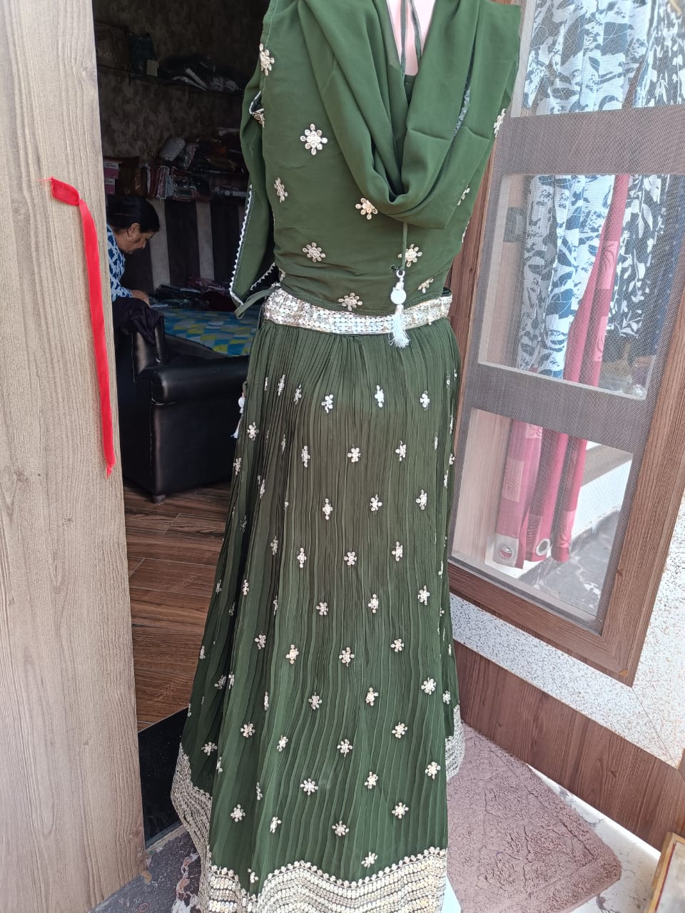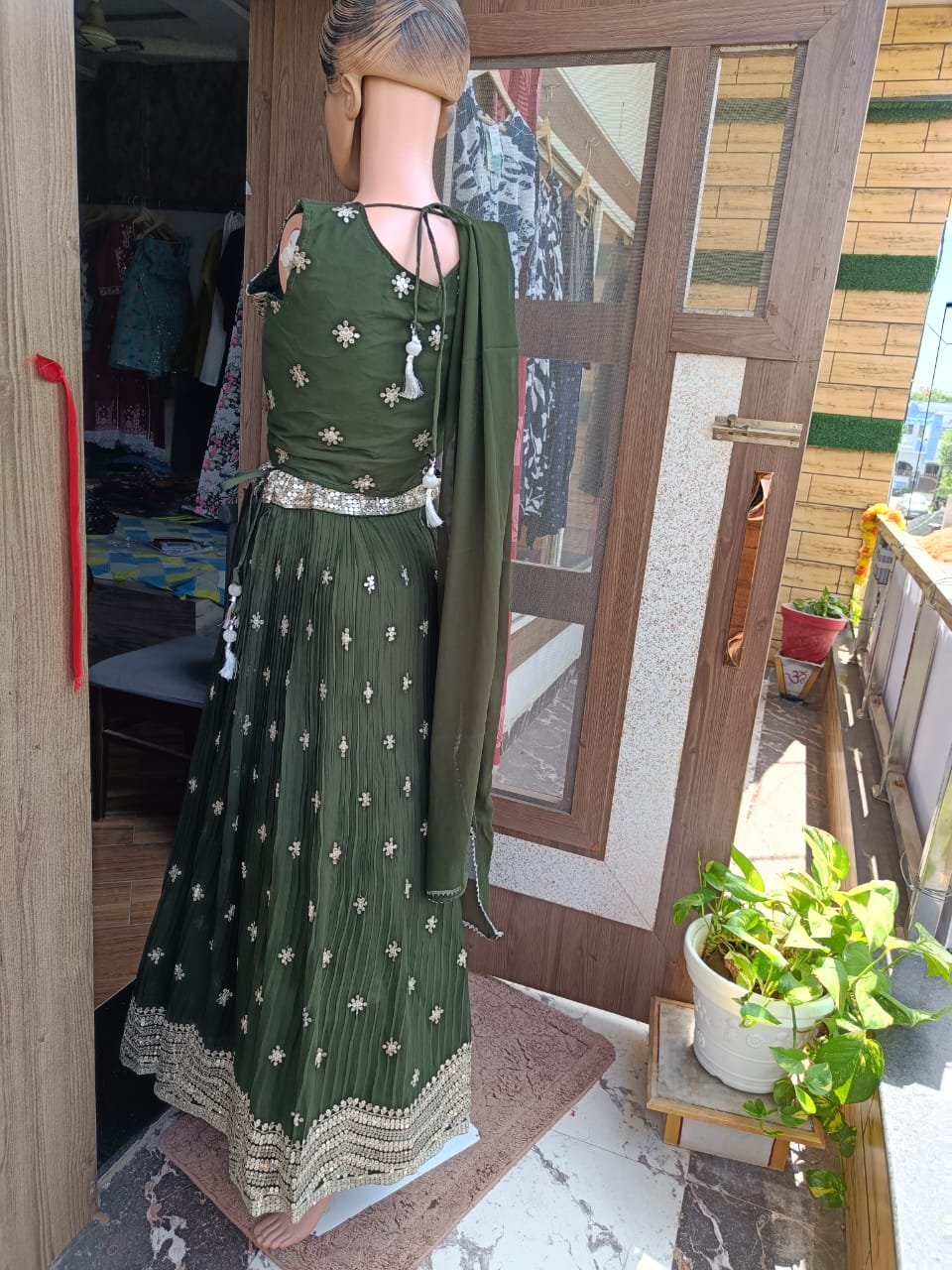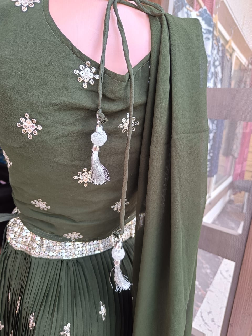 3 Piece Lahenga Choli (Green Dark Mehndi Colour )