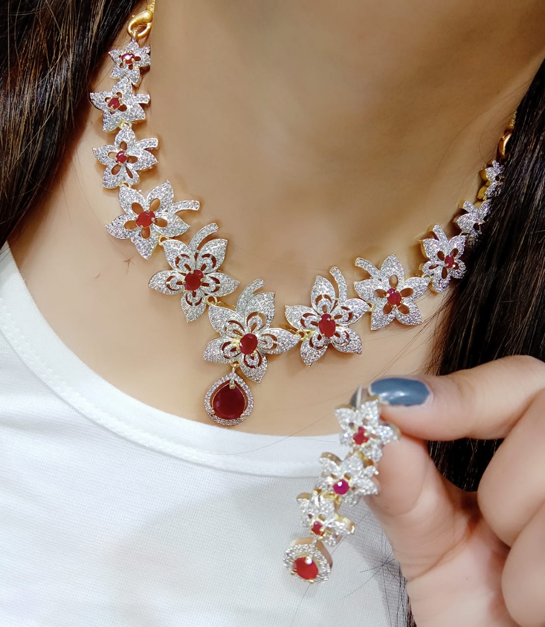 American Diamond Earrings With Necklace Set