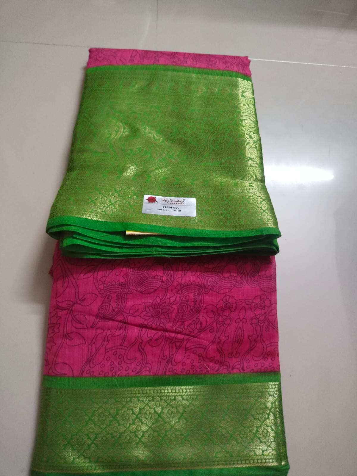 Beautiful Soft Cotton Saree With Kalamkari Printed Pallu And Contrast Blouse