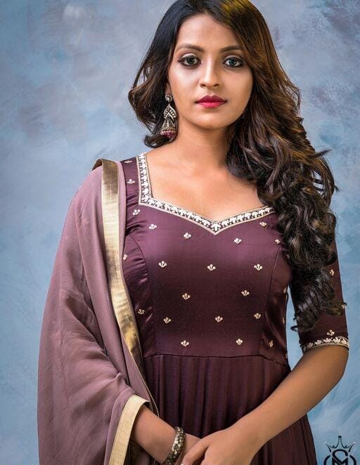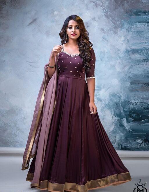 Georgette Gown With Embroidery Neck Line With Dupatta