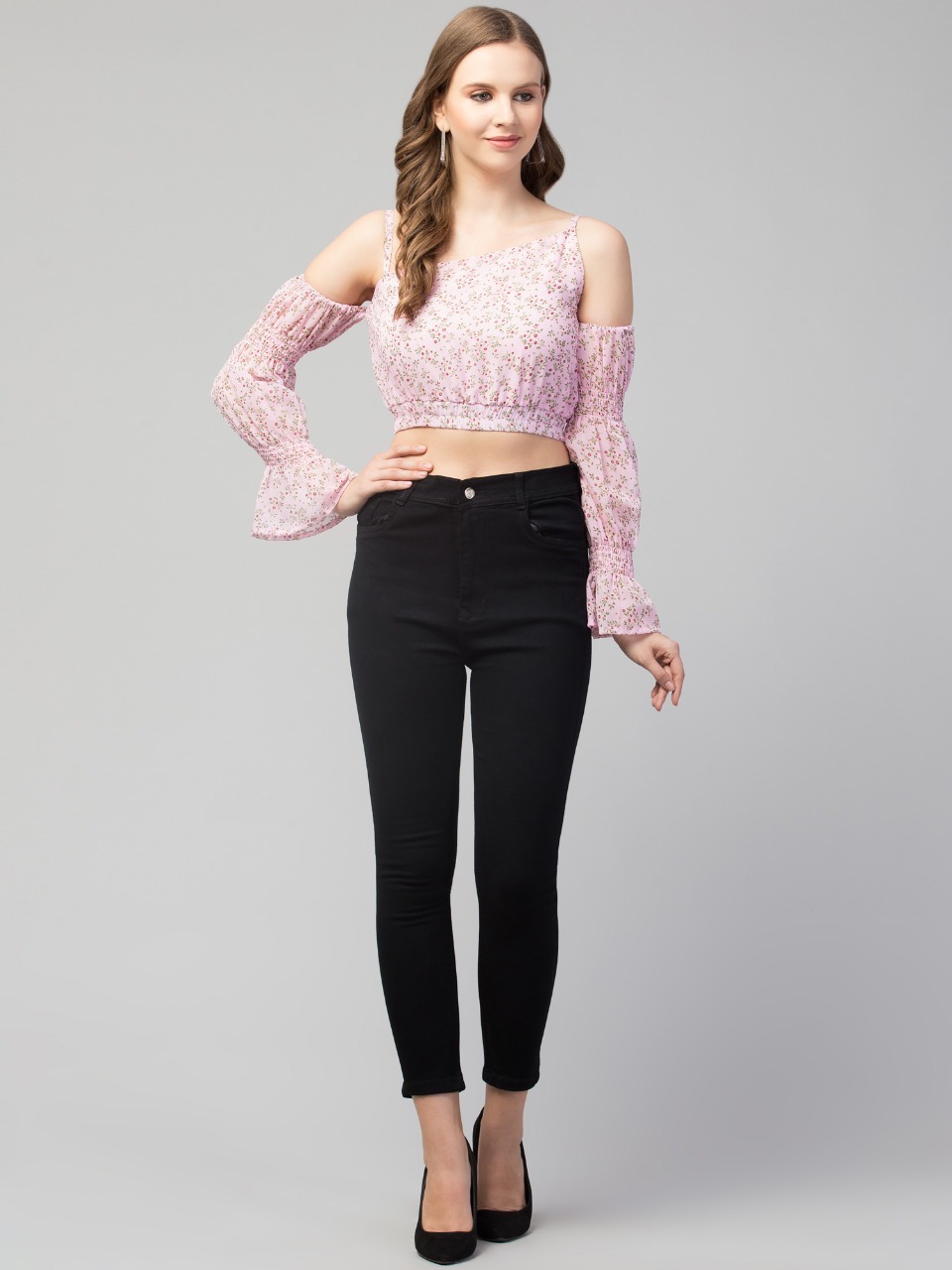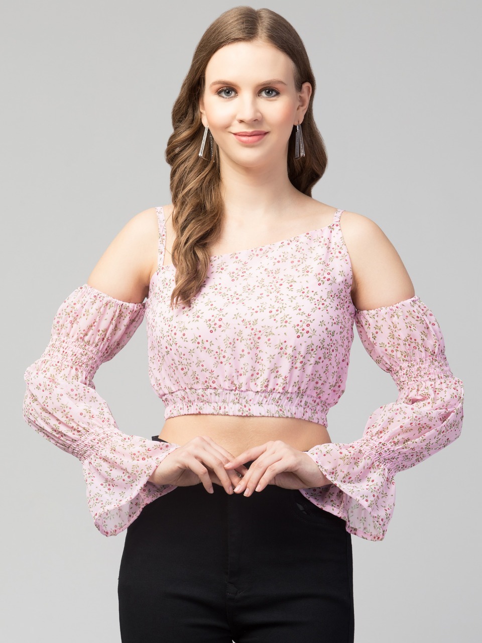 Cold Shoulder Floral Crop Top For Womens & Girls