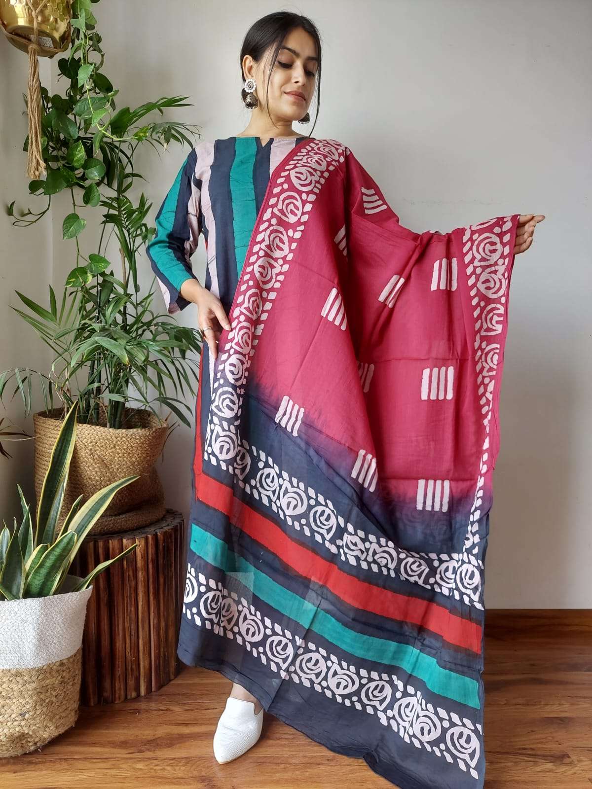 Hand Block Printed Stitched Cotton Suits With Cotton Dupatta
