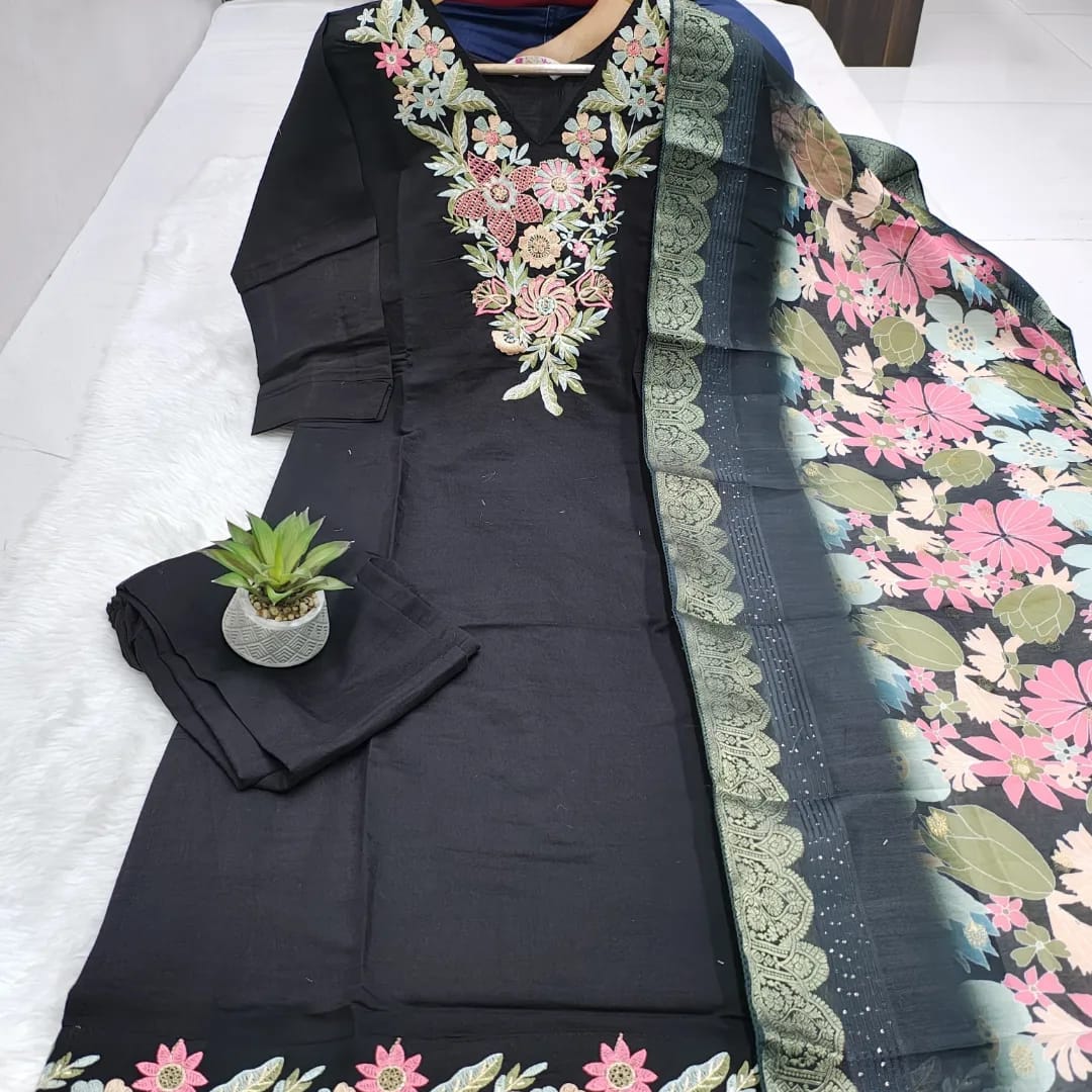 HANDWORK KURTI WITH PANT & DUPPATA SET