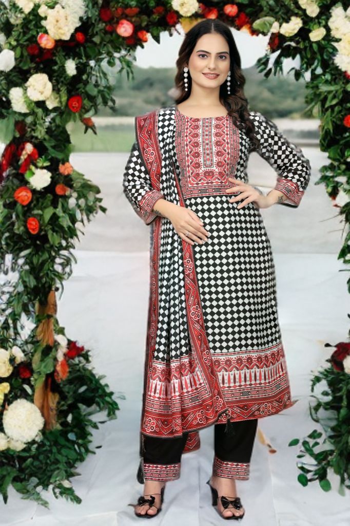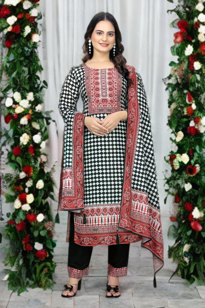 Kurti Suit Set  seems to be a party wear outfit made from maslin  fabric with Maslin  Duptta.(3-Pair)