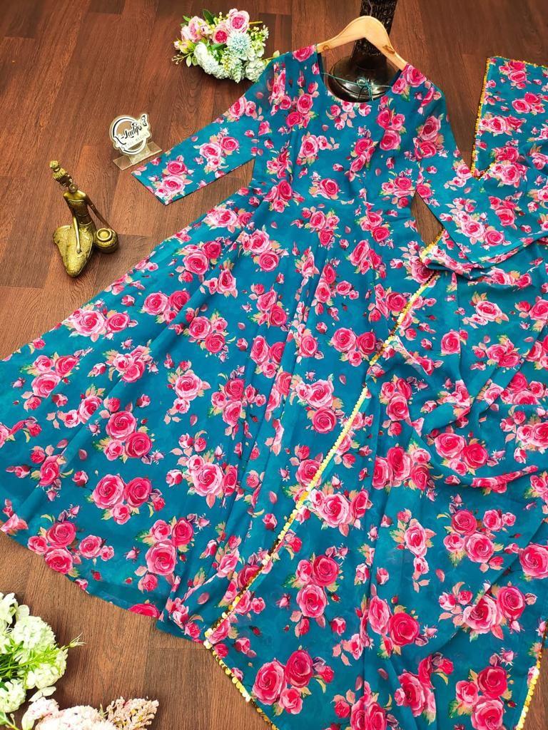 For an absolutely stunning look, wear this Georgotte maxi dress with flare sleeve, Its specially designed for comfortableness and Crafted from georgotte.