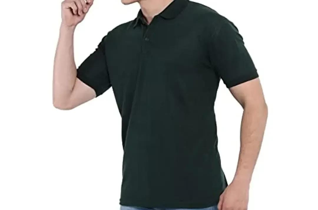 Men Polo Collar Neck Cotton Blend Tshirt DarkGreen