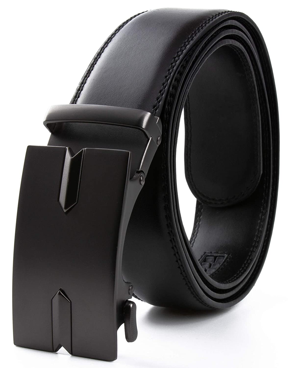Men’s Genuine Leather Auto Lock Buckle Belt (Free Size, Black)