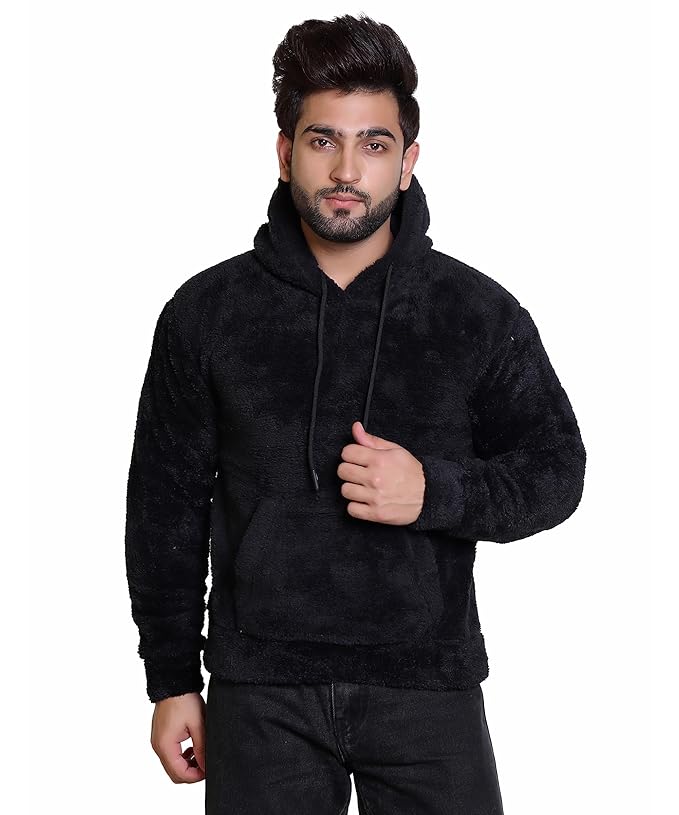 Men’s Stylish Wool Hooded Neck Sweatshirt | Men Regular Fit Sherpa Full Sleeves Winter wear Hooded Sweatshirt for Men (Large)