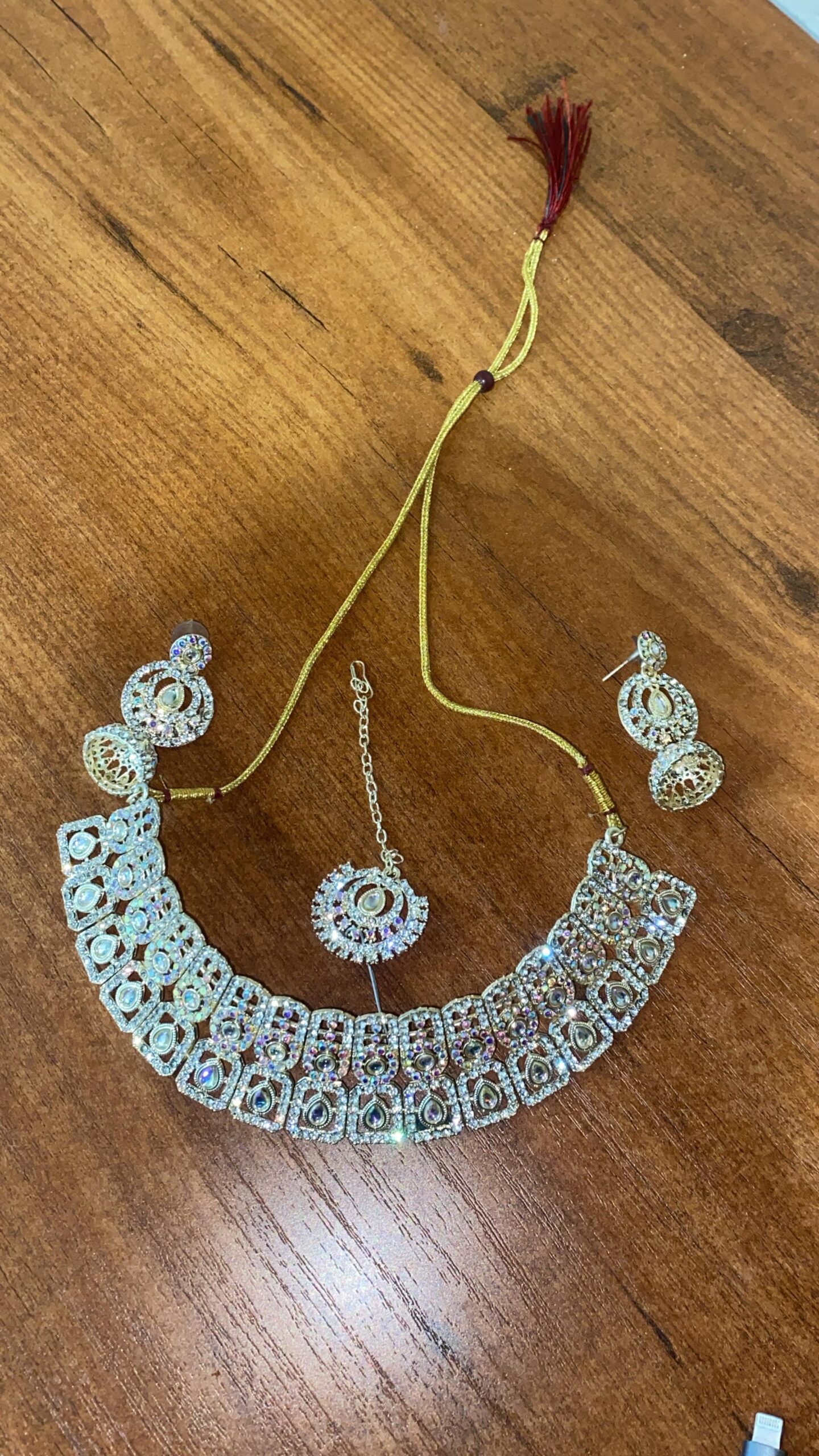 Shining Stone Jewelry Set: 2 Jhumke & 1 Mangtika